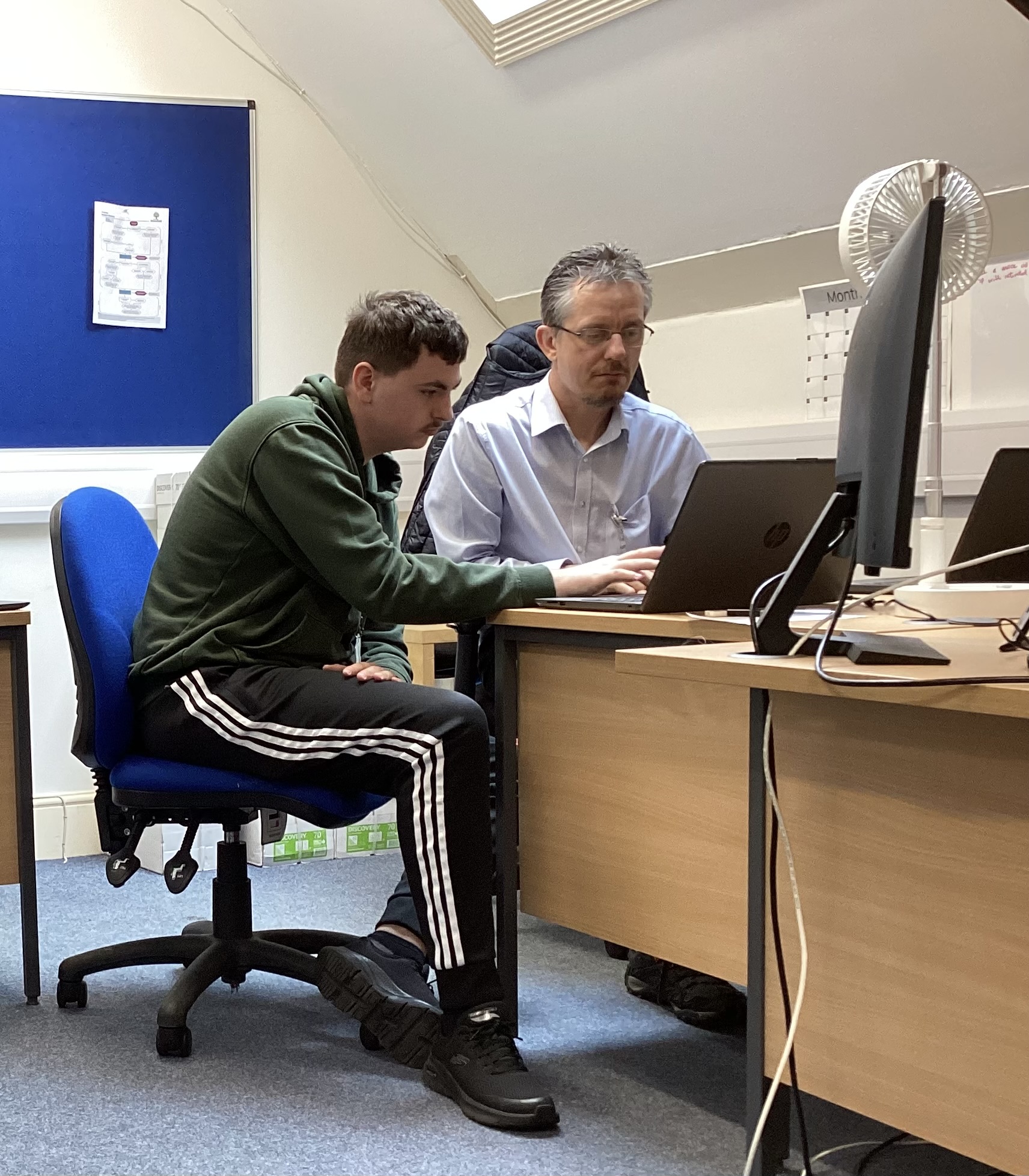 Student B, a student who appears to thrive in close proximity to her lecturer, has found significant benefit from the use of a laptop in this setting. Student B is more comfortable sitting alongside her lecturer, and with the laptop in close reach, she can work more efficiently by referencing materials and engaging with interactive content during sessions. The laptop appears to provide her with a sense of security and focus, allowing her to take notes digitally, engage with resources, and manage her work in a way that best suits her learning style. This dynamic has appeared to have greatly improved Student B’s confidence in class and allowed her to be more active in the learning process.